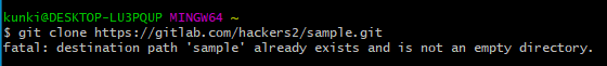 폴더가 완성 된지 모르고 계속 클론 명령 내리면 이런 메세지 나온다 이미 폴더가 생성되었다는 의미